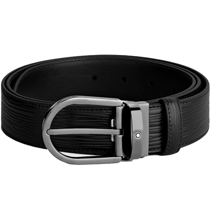 Черный кожаный ремень с подковообразной пряжкой 35мм от магазина премиальных ручек Premium Pens в Новокузнецке.