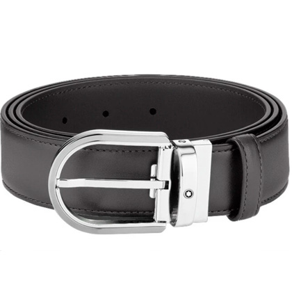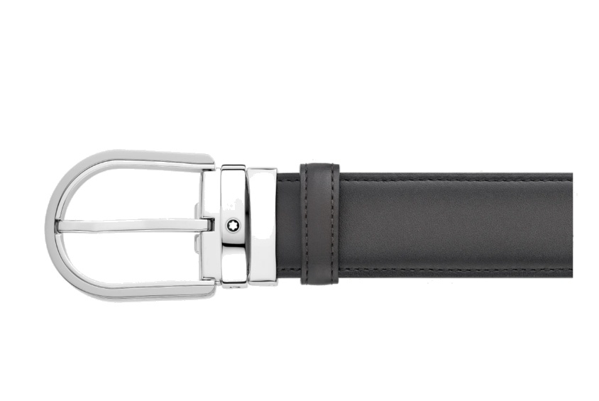 Кожаный ремень с пряжкой в форме подковы серого цвета 35 мм от магазина премиальных ручек Premium Pens в Новокузнецке.